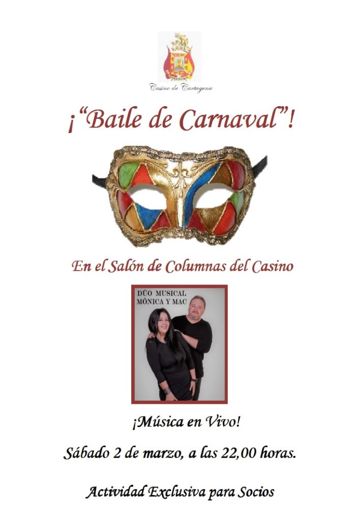 Este sábado 2 de marzo a las 22,00 hs, en la Sala de Columnas del Casino de Cartagena: