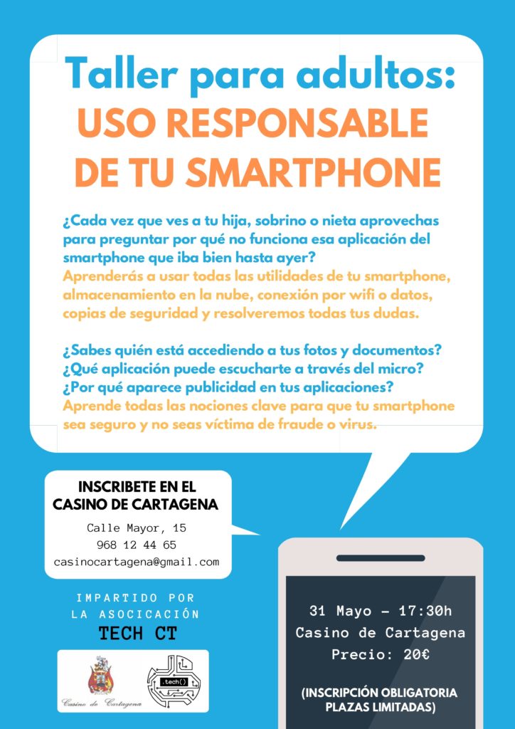 La Asociación Tech va a realizar un curso para aprender a utilizar los móviles («almacenamiento en la nube, conexión wifi o datos, copias de seguridad etc….. ) y hacer así un uso responsable de los mismos,
